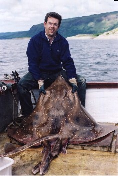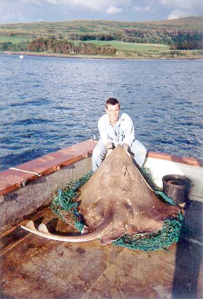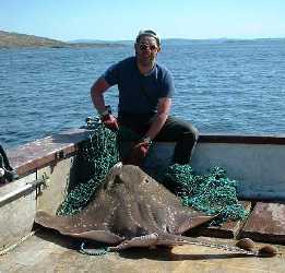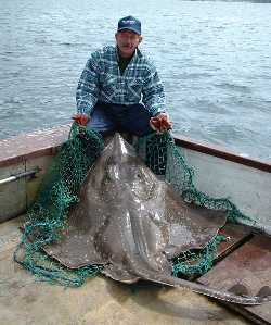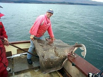 Myself with the first big skate aboard the new catchalot, a nice female of 169lb |